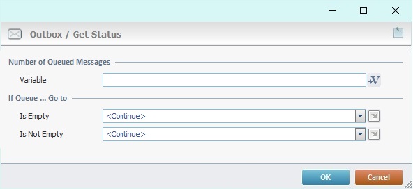 When you add a process, you are required to define its settings. This occurs in the process's properties window which is displayed automatically after having added the Outbox / Get Status process.