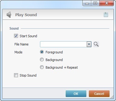The Play Sound process is used to start or stop playing an audio file.