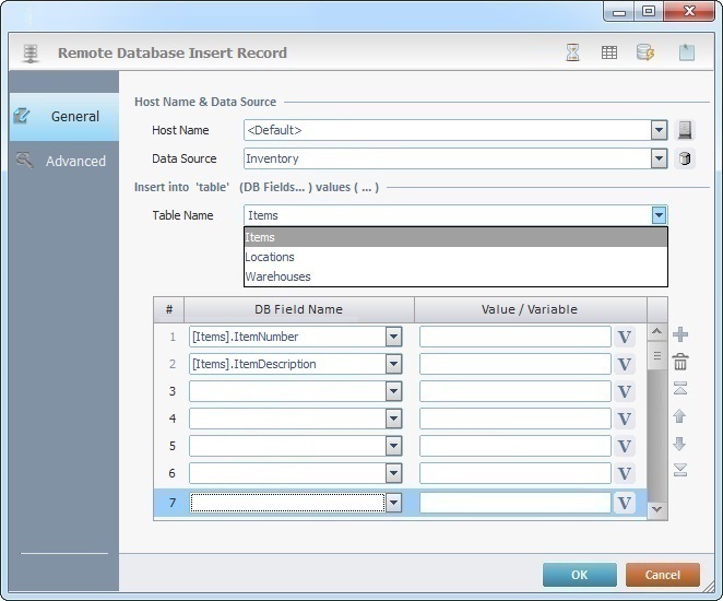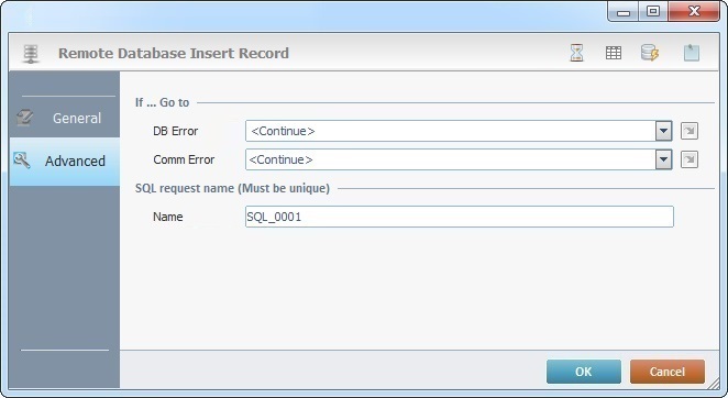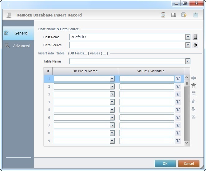 The Insert Record process is used to insert a record into a table of a remote database in a specific Host server.