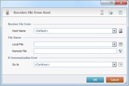 Select the local or data file that will receive the remote file from the drop-down list. If required, click |