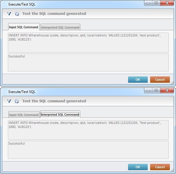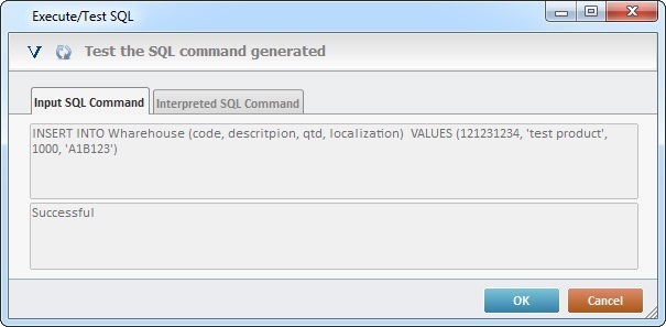 Depending on the tested SQL command, the next window will display the results (ex: Insert Records).