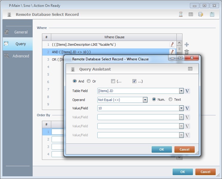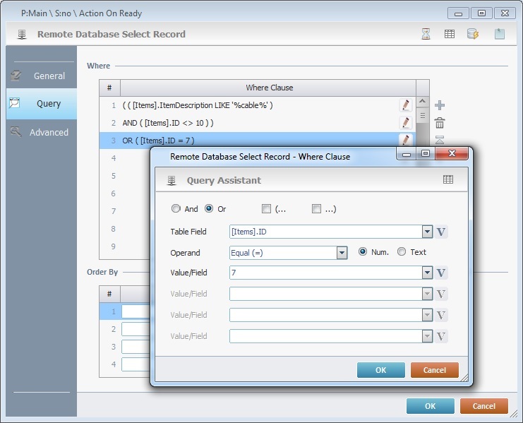 These logical operands are only available if there is more than 1 Where clause for this query. Check “And” or “Or” depending on the query's purpose. |