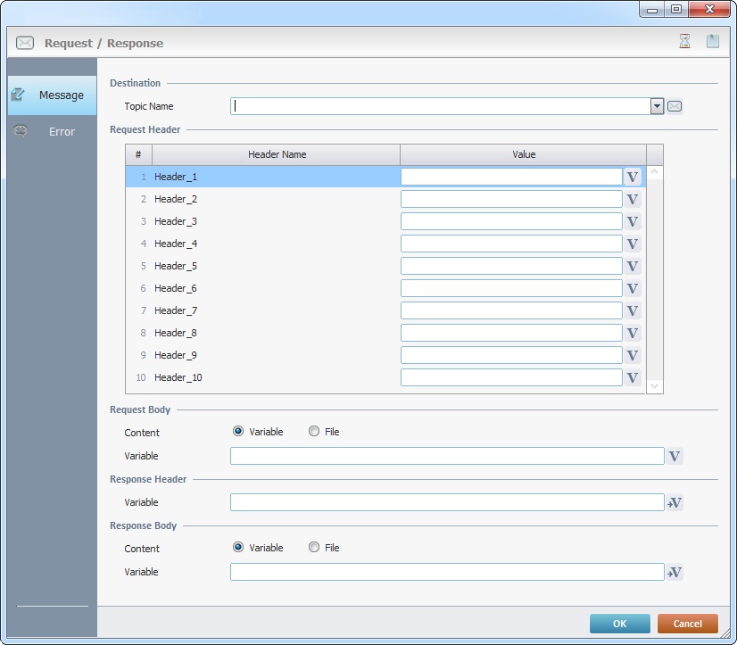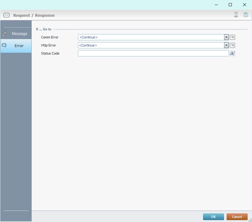 In this case, the properties window includes two tabs - "Message" and "Error".
