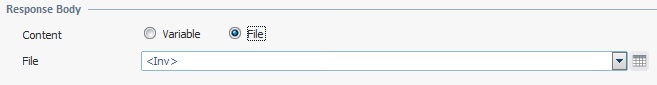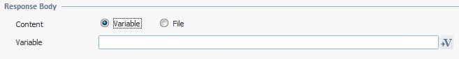 Select the content type for the message body. The selection of the target (Variable/File) affects the related option (located below). |