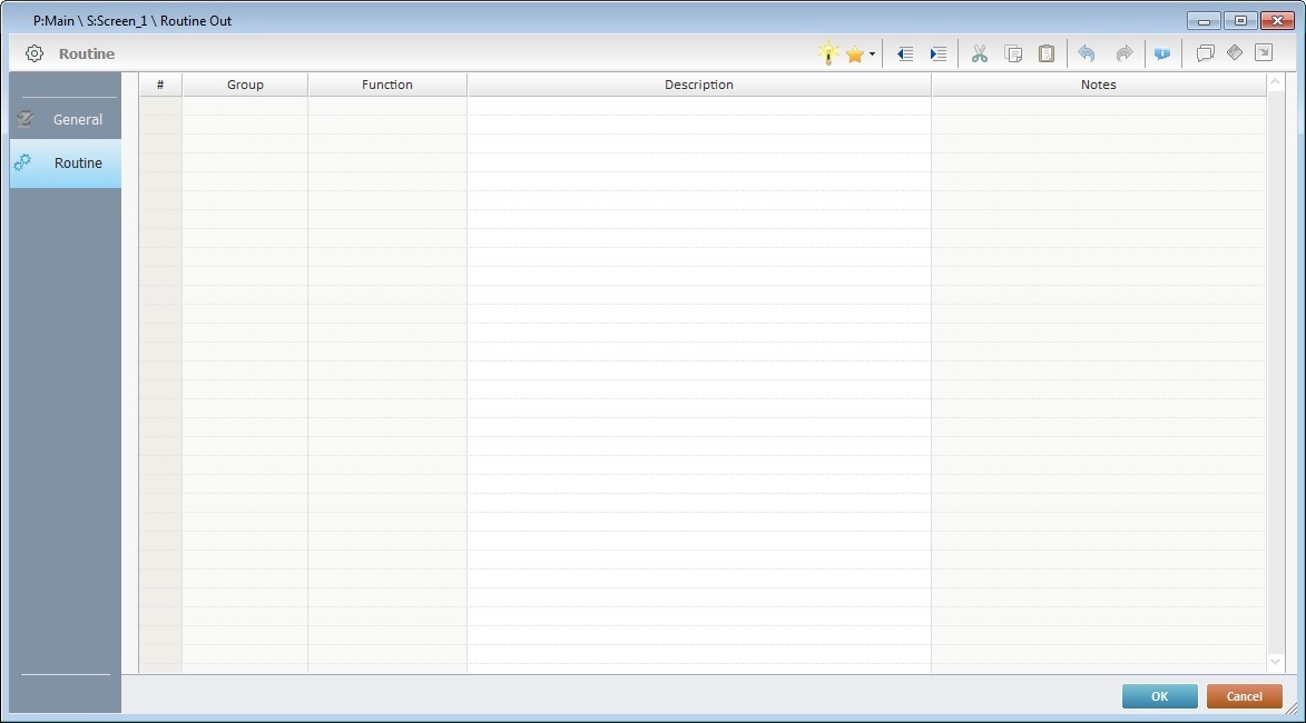 •In the open screen that will include the "routine out", right-click an empty area and select "Routine Out" in the resulting menu.
