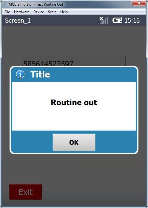3. A "Message Box" is displayed. (The process added to the "routine out" is executed).