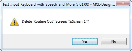 It is possible to add a "routine out" to all the screens at once. You just have to check the "Create Routine In/Out for new Screens" option, available in the "MCL-Designer Setup" window, when starting a project - every screen you create within the new project will include an empty "routine out". You can also check the "Create Routine In/Out for new Screens" option throughout project development. In this case, only new screens will automatically include a "routine out". The previously created screens will not be affected. See Option "Create Routine In/Out for new Screens".
