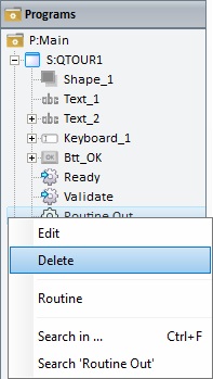 1.In the tree view ("Programs" module), right-click the "routine out" you want to delete.