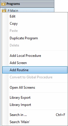 1. Go to the "Programs"module and right-click the program that will include the routine.