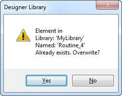 •If the library already contains a routine with the same name, the following message box appears: