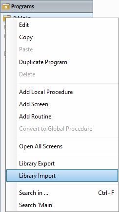 c. Depending on your target for the routine to import, right-click a program or a global procedure select "Library Import".