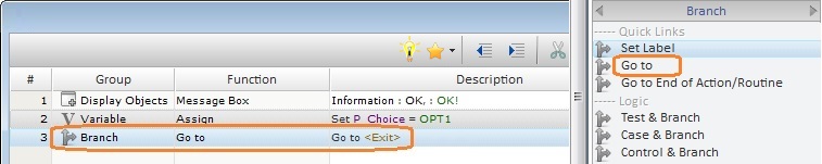 Ex: Calling a routine with a "Go to" Branch process implies that the called routine should end with the "Go to End of Action/Routine" process.