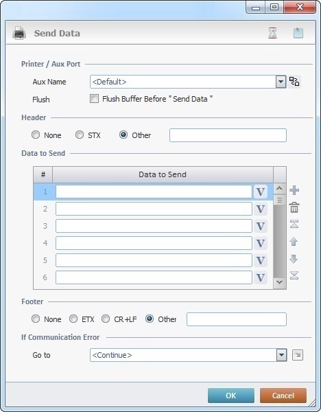 The Send Data process is used to define the structure of the data that is going to be sent through a port to an auxiliary device.