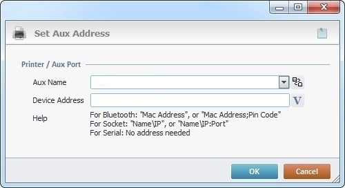 The Set Aux Address process is used to set an address (Bluetooth, Socket or Serial) of a given auxiliary device profile.