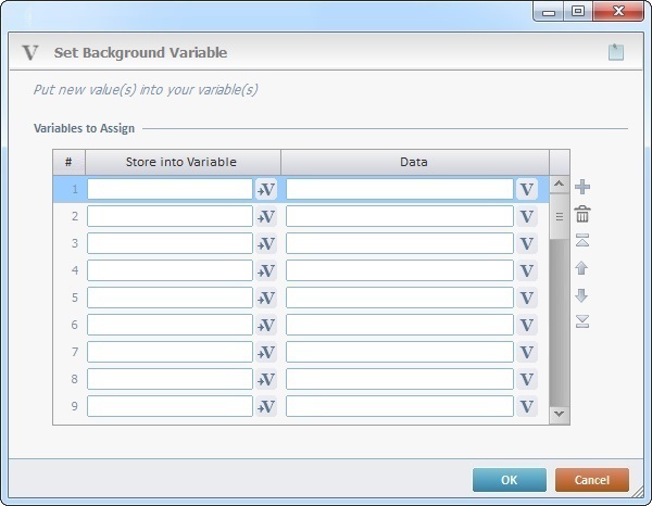 This process is available within a background procedure so you can assign values to output background variables or to another type of unspecified background variable.