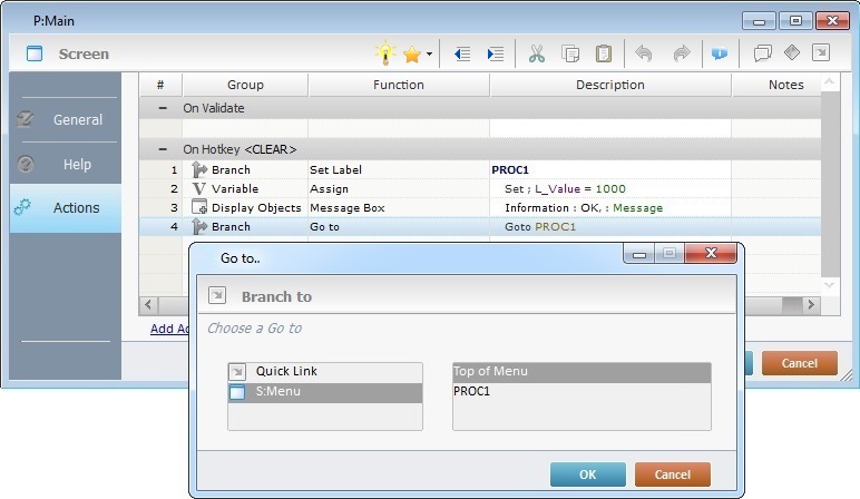 •If the setting of a label occurs within a screen or a control's action, it can only be called from within that action (private label).
