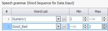 Speech grammar (Word Sequence for Data Input) table |