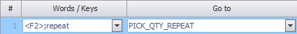 Select the words/commands and/or keys/key combinations that can be used by the operator to send the application's workflow to other destinations from the drop-down list. If you want to use words/commands and did NOT select an App Word list in the previous drop-down list, you have to enter the intended word. It is possible to combine keys/key combinations with words/commands. Select the intended key/key combination, enter a semicolon (";" is the only accepted separator) and, then, enter the intended word (ex: "<F2>;repeat").