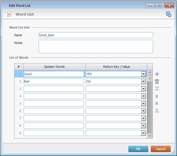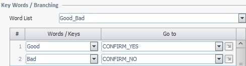 The "Good_Bad" word list contains the words "Good" (return value is "Yes") and "Bad" (return value is "No").
