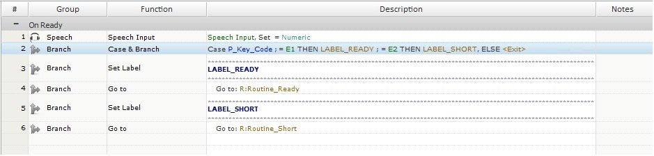 If the operator ends his speech input with the word "Ready", the application will, also, consider the input as complete but will redirect him to "R:Routine_READY".