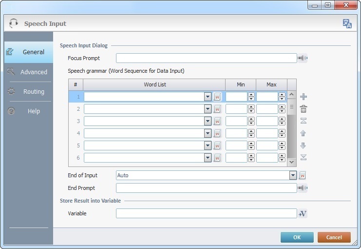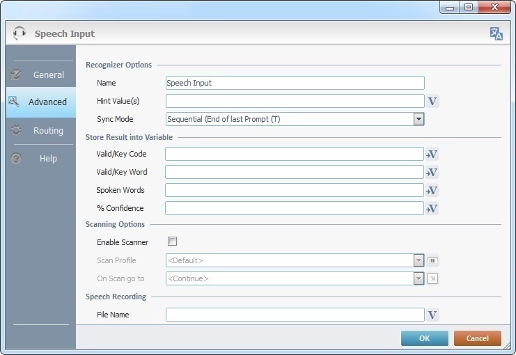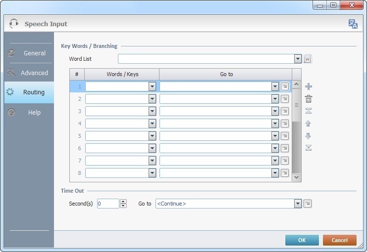 3. In the "Speech Input's" properties window, open the "Routing Tab".