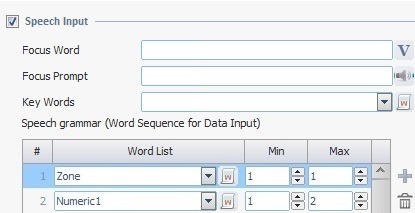 Enter the focus prompt or click The focus prompt's purpose is to provide information or instructions to the operator so that he can use speech input. The focus prompt can be a word, a sound, etc. |