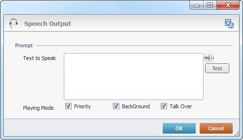 If checked, the execution of this prompt will have priority over any other defined speech output, meaning, it will override/cut off any other speech output occurring at the same time (this includes speech output that is already running when this process is executed and the speech output that is supposed to start at the same time as this prompt). If you leave it unchecked, and there is another speech output (that was executed before), the prompt will be appended to that speech output, it will be executed as soon as the other one is finished. |