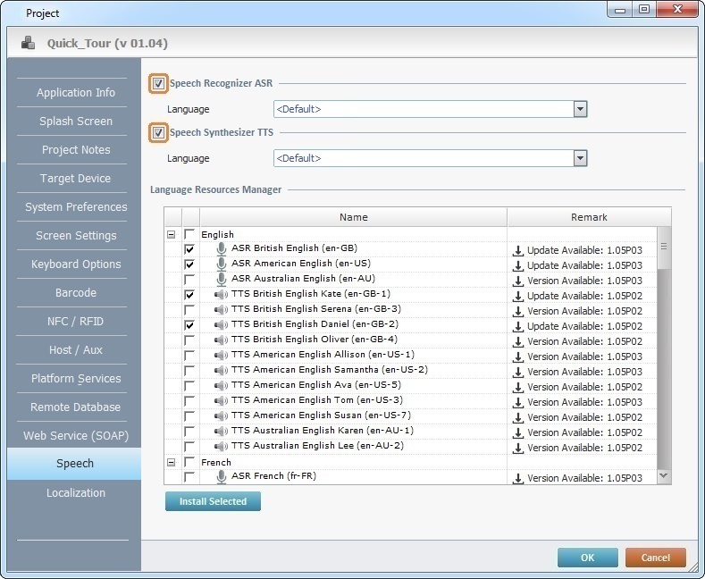 The Speech group of processes includes all speech related processes which allow you to manage the use of speech input/output in a project.