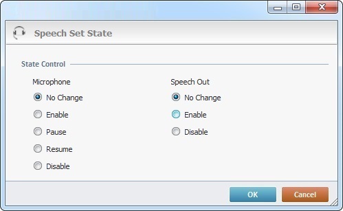 The Speech Set State process is used to control the state of the device's headset (microphone and speakers).