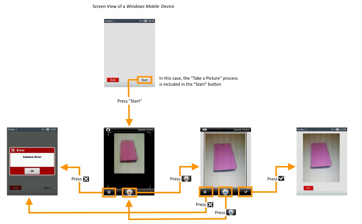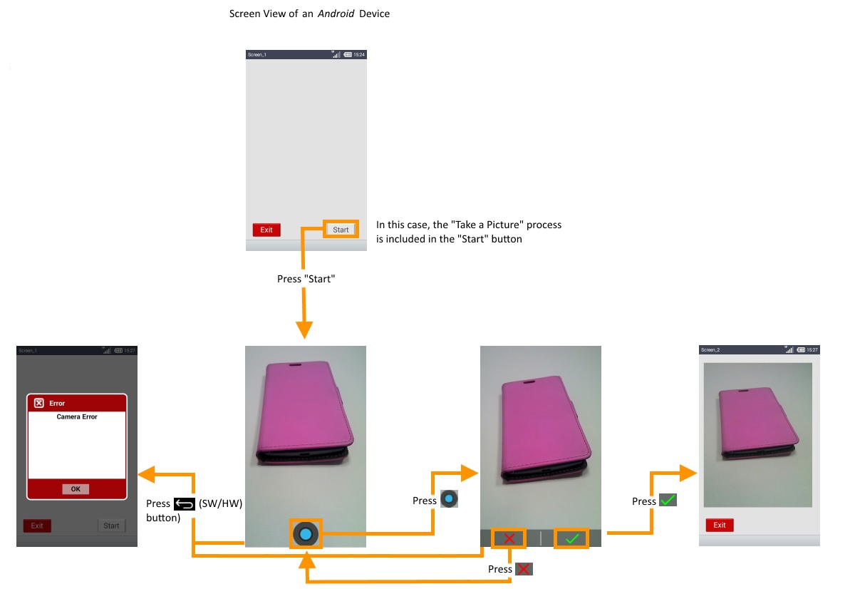 The Take Picture process allows for the use of the device's photo camera to take a picture/capture an image.