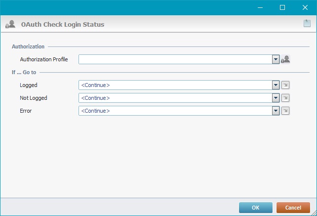 The Check Login Status process is used to check the status of the current authorization profile (Logged in or Logged out).