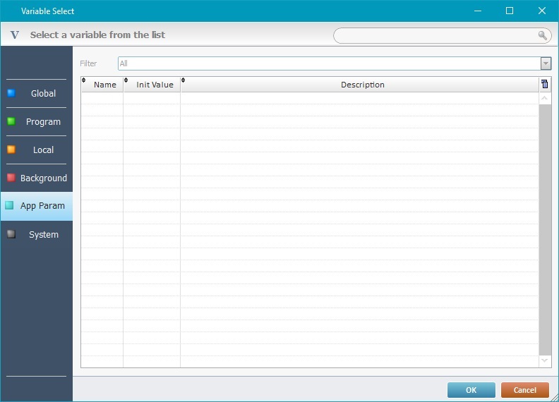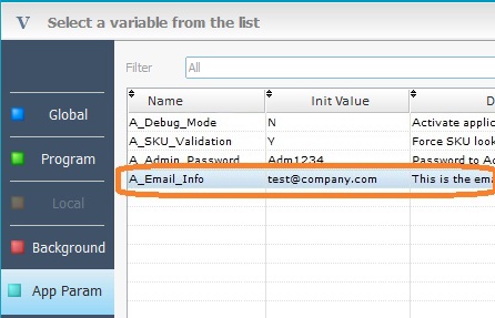 1. Create the necessary app params variables in the “App Params” tab (in the Variable Select window).