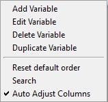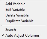 Right-click Menu on Variables