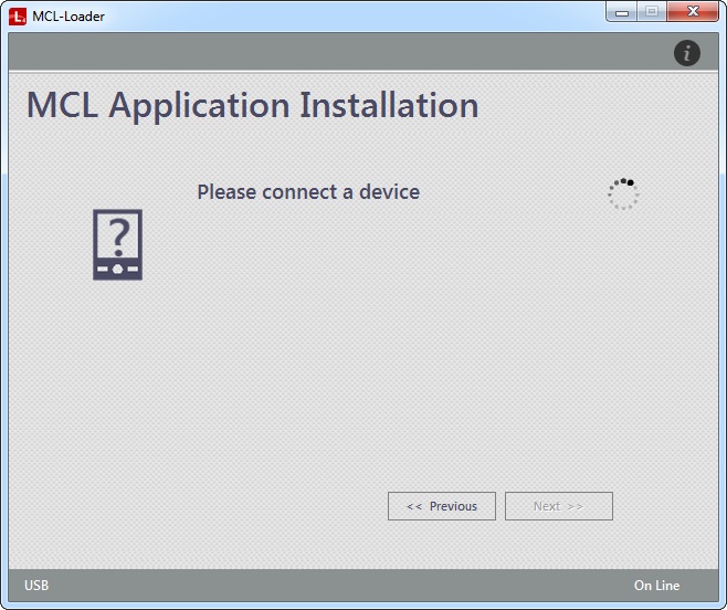 Check this option, if you intend to use a USB connection between MCL-Loader V4 and your device, and follow the steps described in Via USB Connection.
