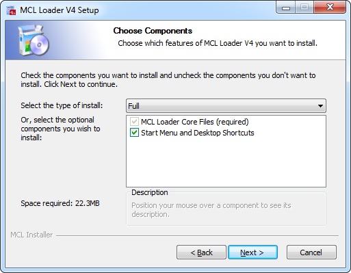 Essential component to the installation. Cannot be removed from the MCL-Loader V4 installation, so the checkbox is inactive. |