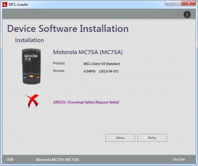 Make sure that your device is connected to the PC where MCL-Loader V4 is installed (you can use a USB or Wifi connection) and that your PC is connected to the Internet so you can install new MCL-Client packages in the device.