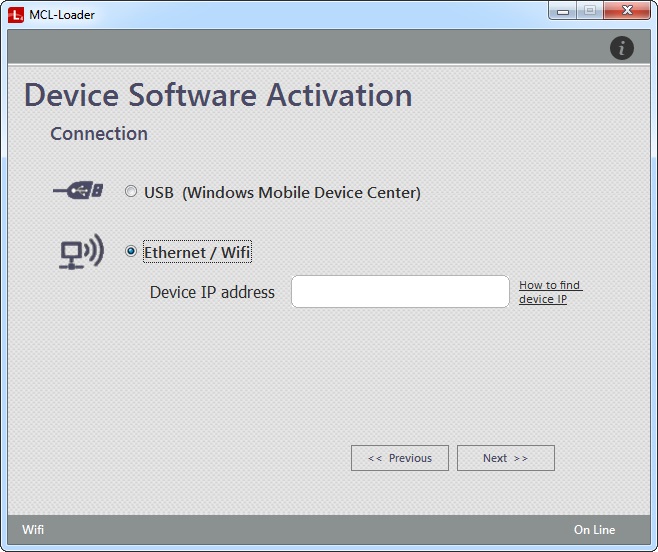Once you have installed the appropriate MCL software (see How to Install MCL-Loader V4) and registered the purchased MCL-Client License Package (see How to Register a License Package), you are ready to activate the MCL-Client's License Package's units, meaning, you are going to associate a device to each available unit (ex: If the MCL-Client License Package includes 5 units, you will be able to activate/associate 5 devices, one per unit, to that license package). This type of connection is available for Windows Mobile/Windows CE and Android devices.
