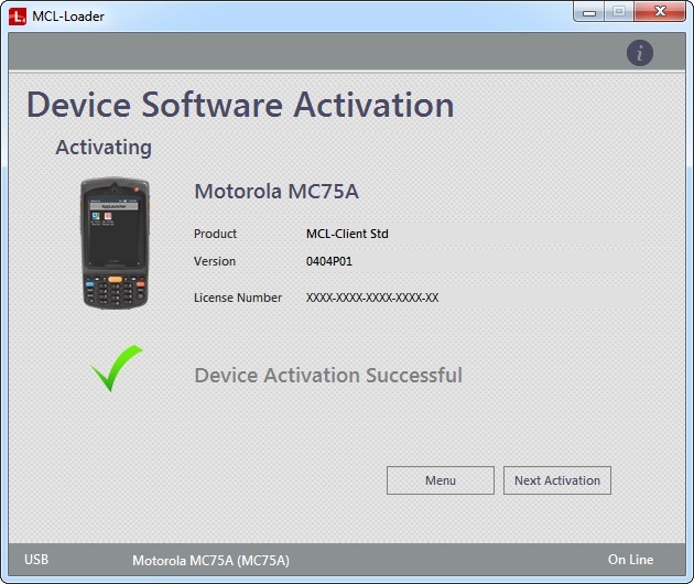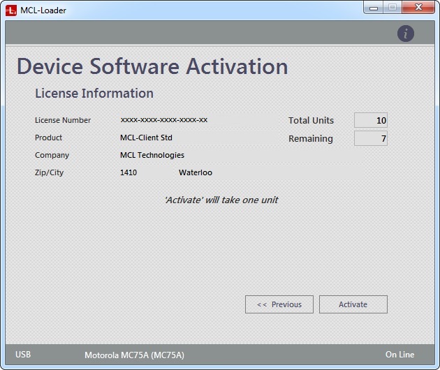 Once you have installed the appropriate MCL-Client (see How to Install MCL-Loader V4) and registered the purchased MCL-Client License Package (see How to Register a License Package), you are ready to activate the MCL-Client's License Package's units, meaning, you are going to associate a device to an available unit (ex: If the MCL-Client License Package includes 5 units, you will be able to activate/associate 5 devices, one per unit, to that license package).